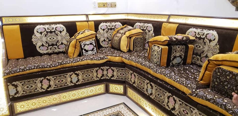 Design d'intérieur Majlis arabe, design classique moderne, ensemble élégant pour salon, sièges d'angle luxueux, design gain de place