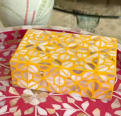 Boîte à bijoux en bois classique artisanale incrustée de nacre arabe - Durable, étanche à l'air, légère avec couvercle