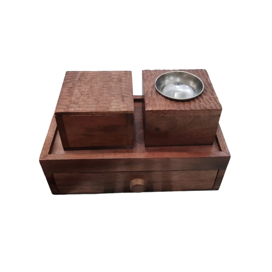 Coffret Cadeau Religieux Arabe du Ramadan : Brûleur à Bakhoor en Bois avec Tiroir, Parfum Rose, Logo Personnalisé, Encensoir de Qualité du Moyen-Orient