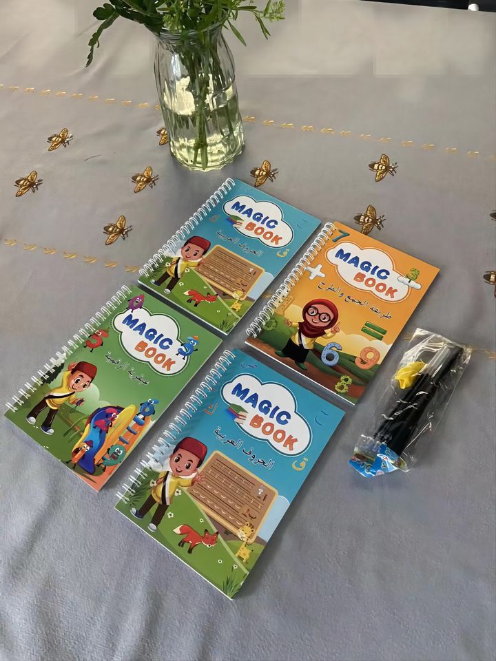 Livre magique à rainures Sank arabes pour enfants, ensemble de cahiers réutilisables pour la pratique de l'écriture, livres éducatifs d'apprentissage de la calligraphie avec stylo