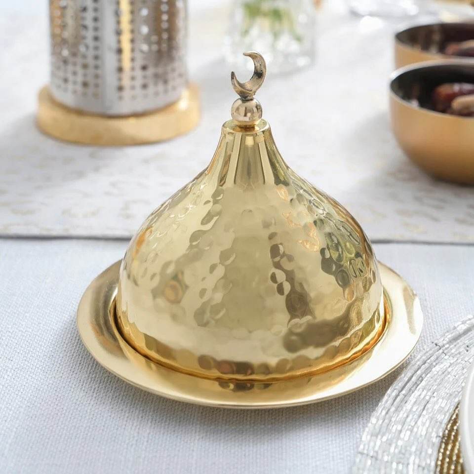 Nom du produit:Plateau de service à dattes en métal martelé doré, style arabe