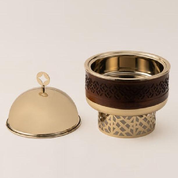 Serveur de nourriture chaude du golfe de style arabe couvercle plaqué argent en acier inoxydable de qualité supérieure potentiellement en bois et éléments décoratifs