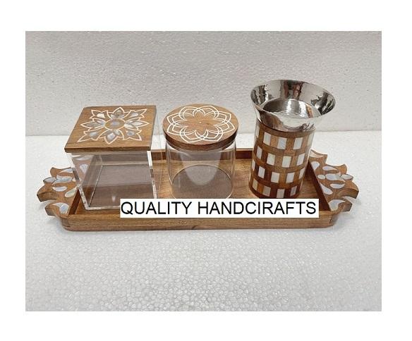Plateau en bois avec pot en acrylique
