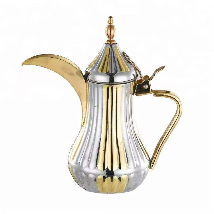 Carafe à café en acier inoxydable de style arabe, finition or et argent, service à thé et café traditionnel pour hôtel et maison
