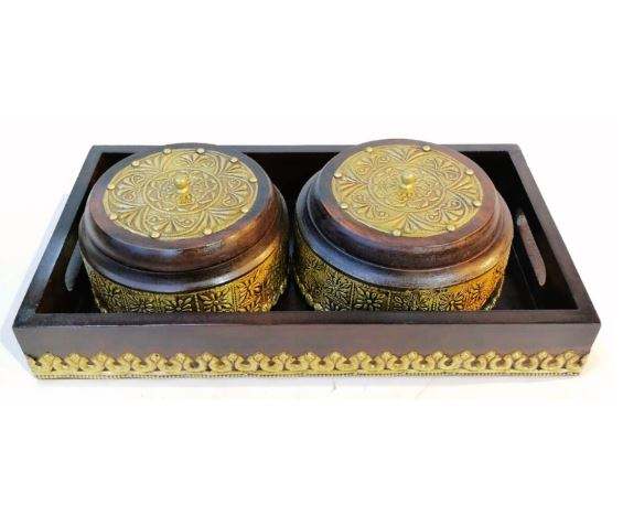 Arabic Style Wooden Metal Chocolate Dessert Serving Tray Bowl 100% Food Safe for Ramadan Diwali Decorative Trays Wholesale Price