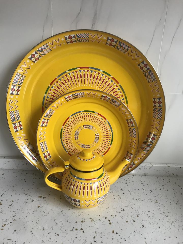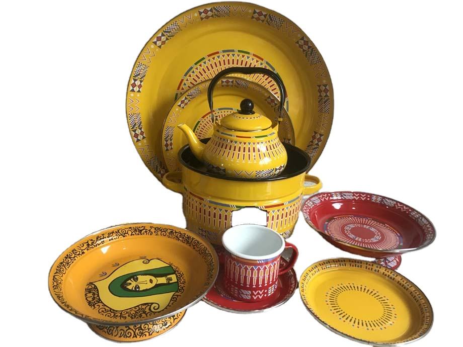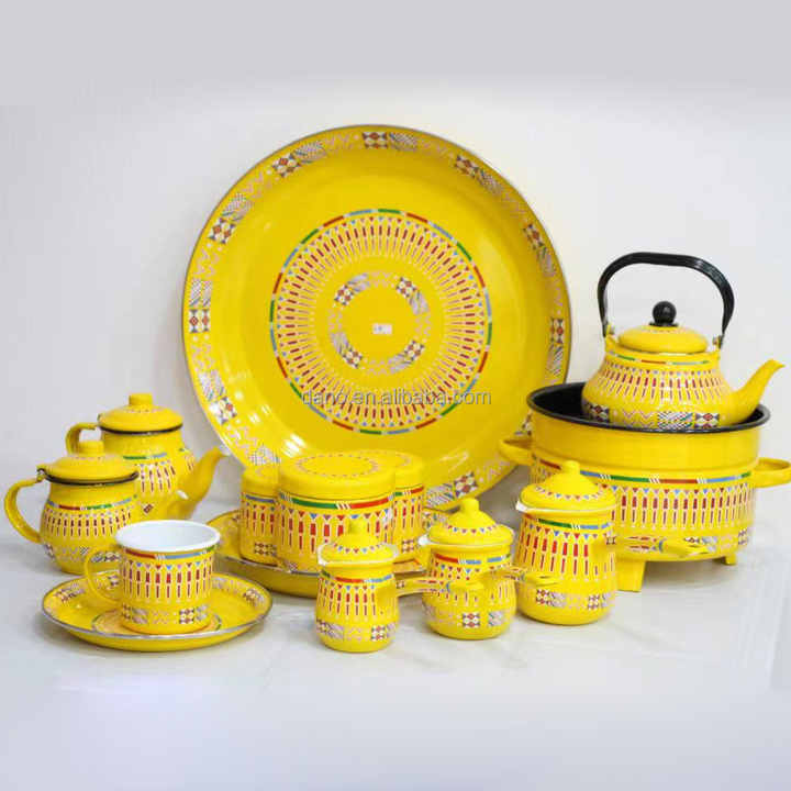 Théières arabes et ensembles de café Plaques en émail arabe Ensembles Plats du Moyen-Orient Couleur jaune