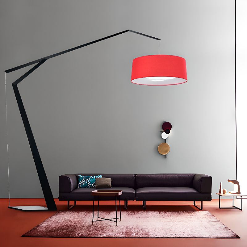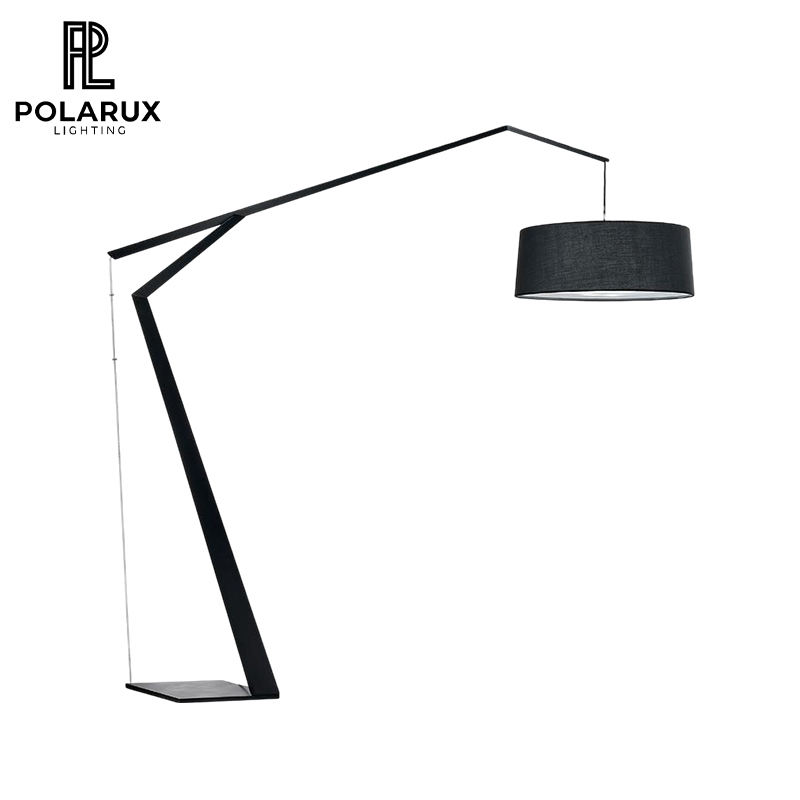 Lampe de sol réglable en arc pour salon salon canapé zone cadre en métal noir abat-jour en tissu Grus lampadaire