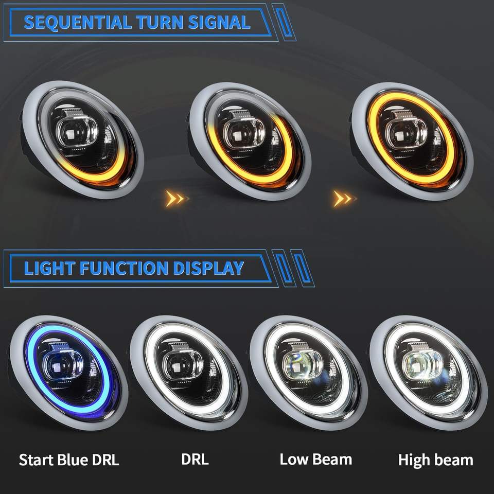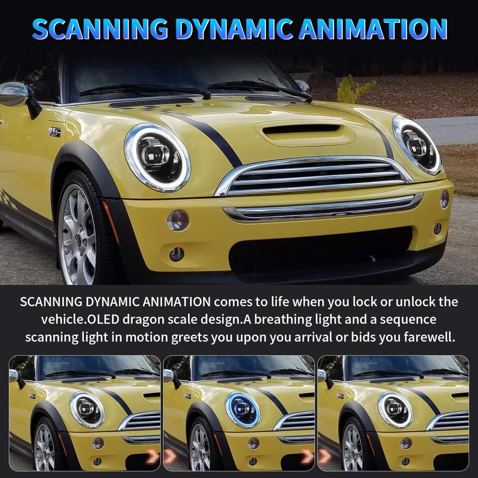 Phares Archaic pour Mini 2001-2007 R50/R53/R52 Cooper S MINI One/D JCW avec clignotants séquentiels à démarrage dynamique