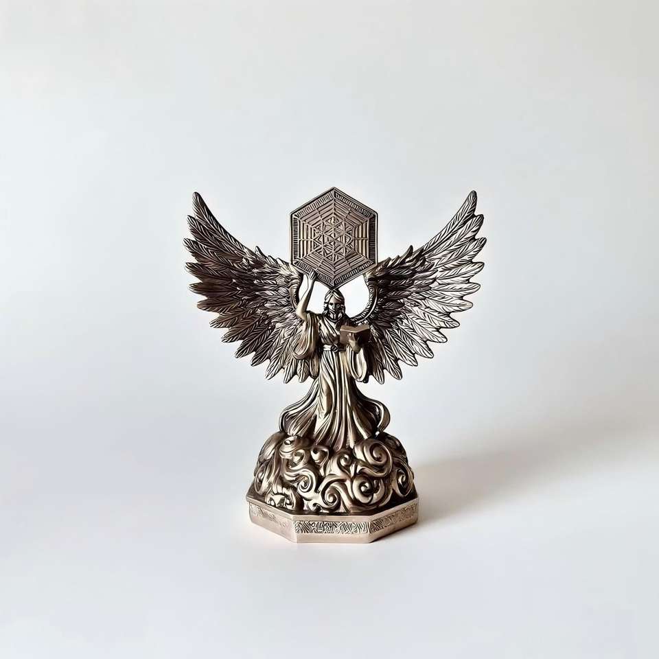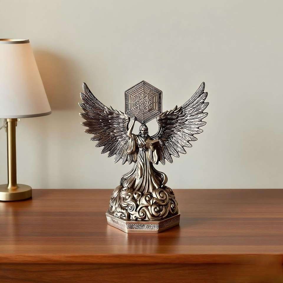 Statue de l'archange Metatron en résine Polystone, figurine en bronze coulé à froid, ange sacré de la géométrie sacrée et décoration spirituelle pour la maison
