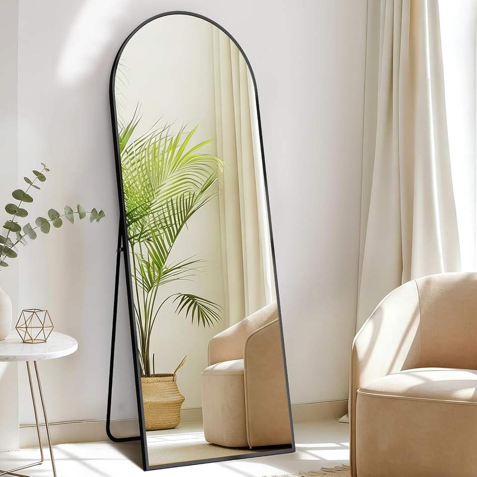 Miroir pleine longueur arqué avec cadre en aluminium, sur pied, design moderne, fait main, épaisseur 2 mm, pour chambre à coucher, salon, usage domestique