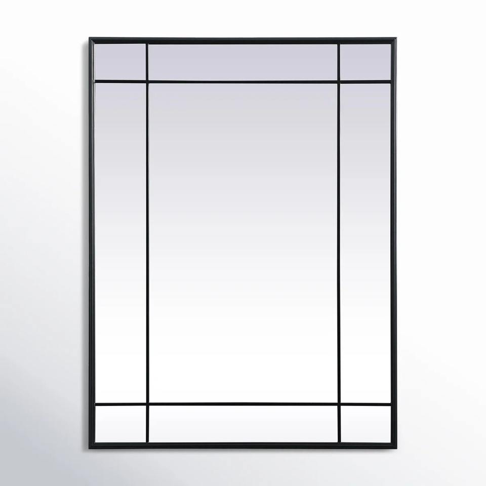 Miroir rectangulaire noir de style architectural, cadre en métal sectionné, miroir d'accent minimaliste, à suspendre verticalement ou horizontalement