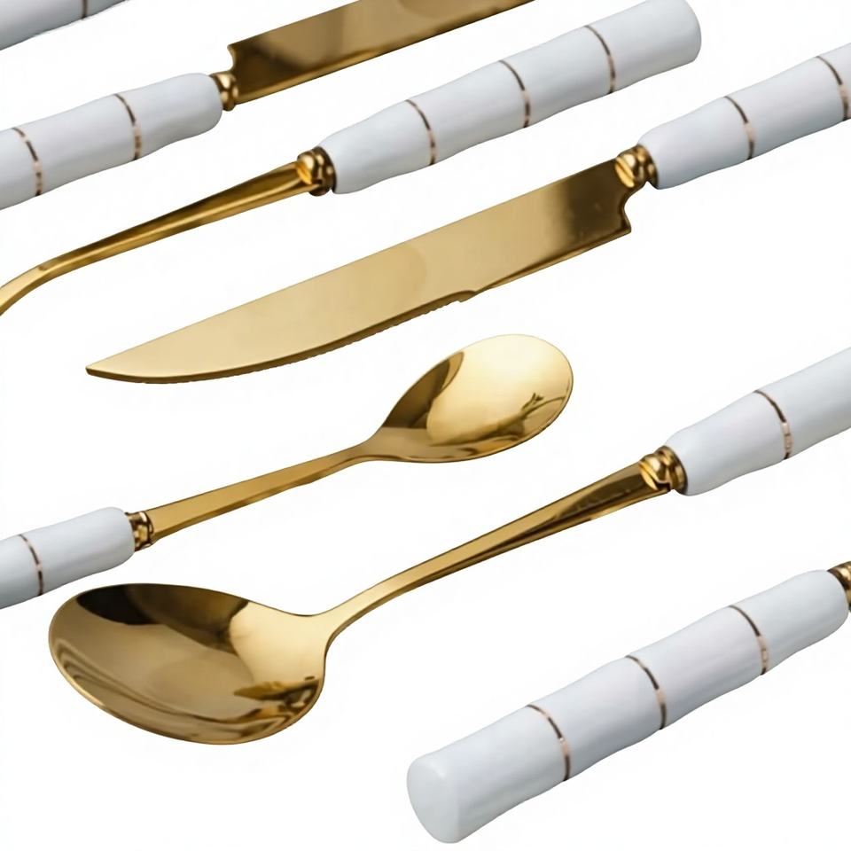 Ensemble de couverts de table en acier inoxydable de style nordique, conçu pour les cadeaux d'affaires et une ambiance culinaire immersive