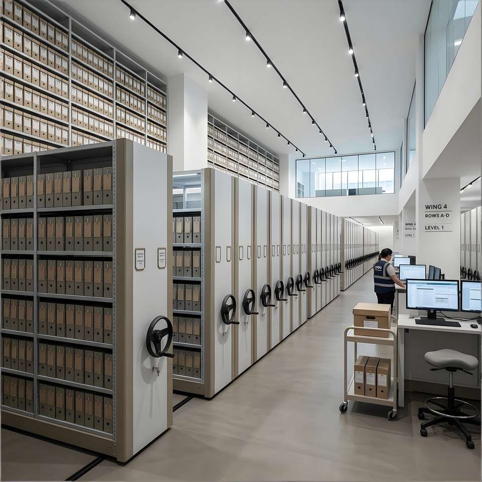 Système d'archivage mobile : Nouvelle armoire métallique avec caractéristiques réglables, idéale pour le rangement dense en bibliothèque ou à l'école