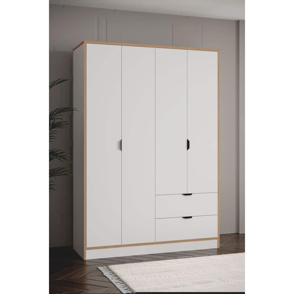 Arden Armoire moderne en bois à 4 portes et 2 tiroirs avec étagères suspendues pour chambre à coucher salon hôpital école rangement pour villa