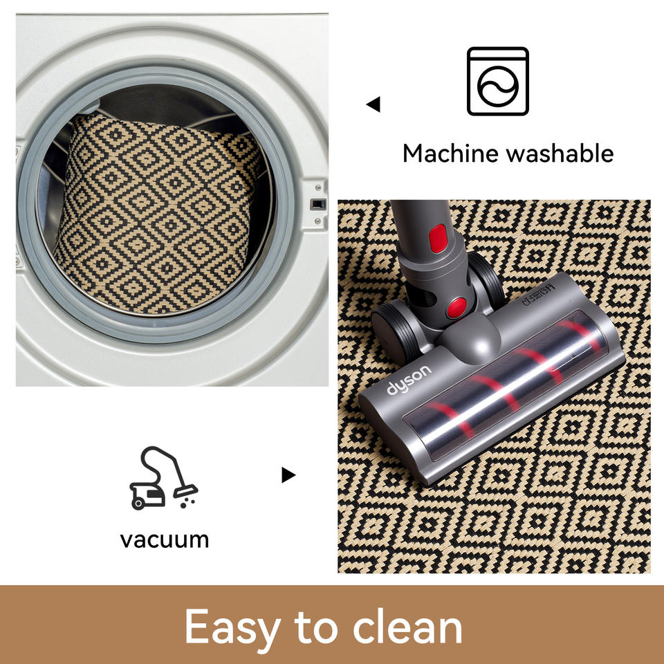 Tapis de sol rectangulaire à motif géométrique marron en mélange polyester-coton pour salon et chambre à coucher