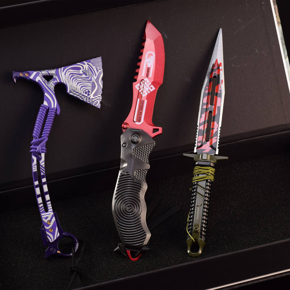Ensemble d'arme Arena Breakout de 3 pièces (hache arctique/sabre de la victoire/poignard de lapin) Boîte cadeau artisanale tactique entièrement en métal pour les fans hardcore
