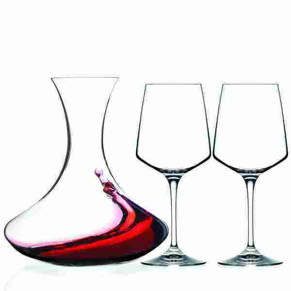 Ensemble de carafe et de deux verres à vin Aria Modern 3 pièces, passe au lave-vaisselle, pour servir du vin rouge
