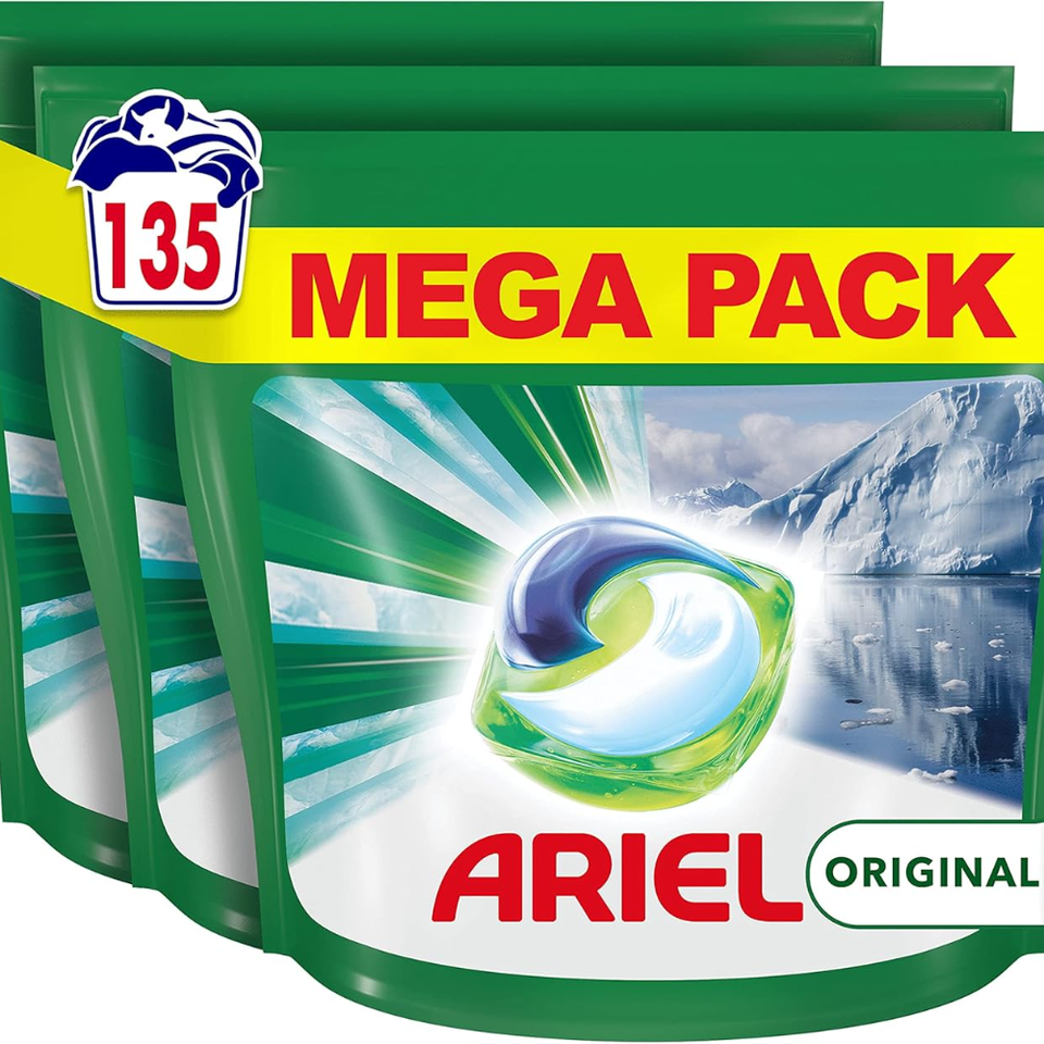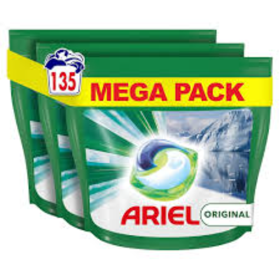 Ariel-Comprimés/capsules de détergent à lessive tout-en-1 PODS, 135 lavages (45x3), Original, nettoyage brillant