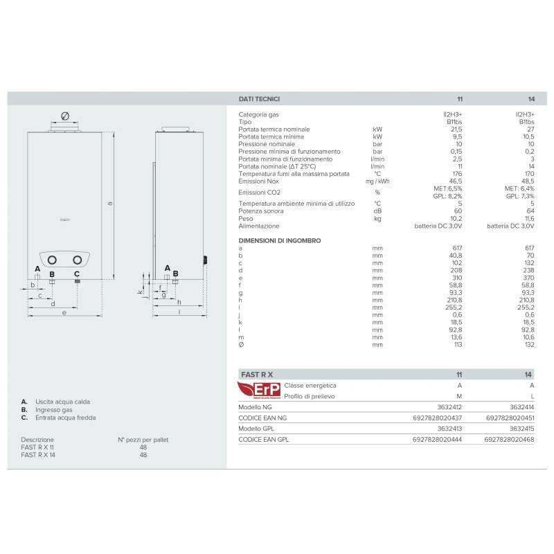 Chauffe-eau au gaz naturel Ariston Fast R X 14 litres à faible teneur en NOx, à chambre ouverte, haute efficacité, classe A en matière d'efficacité énergétique