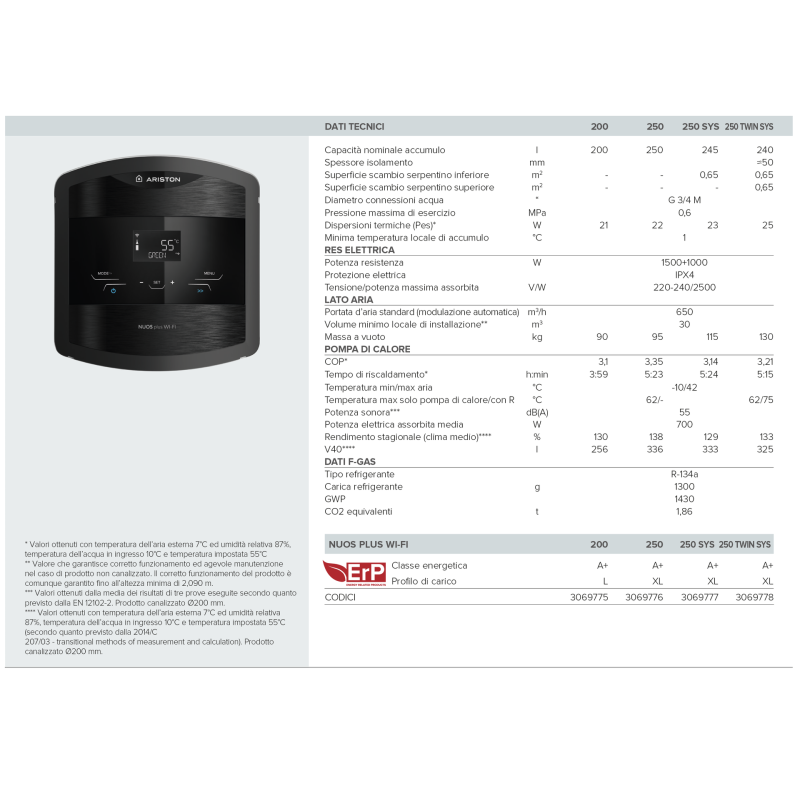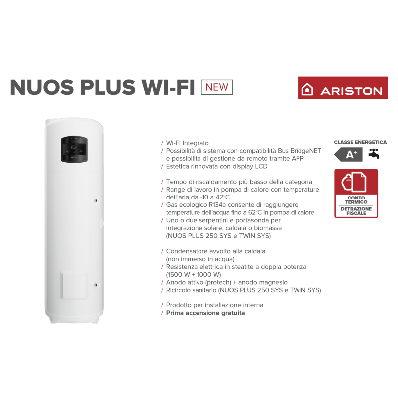 Chauffe-eau à pompe à chaleur air-eau Ariston Nuos Plus 250L Classe A+ WiFi 8kW mural pour usage domestique 3069777