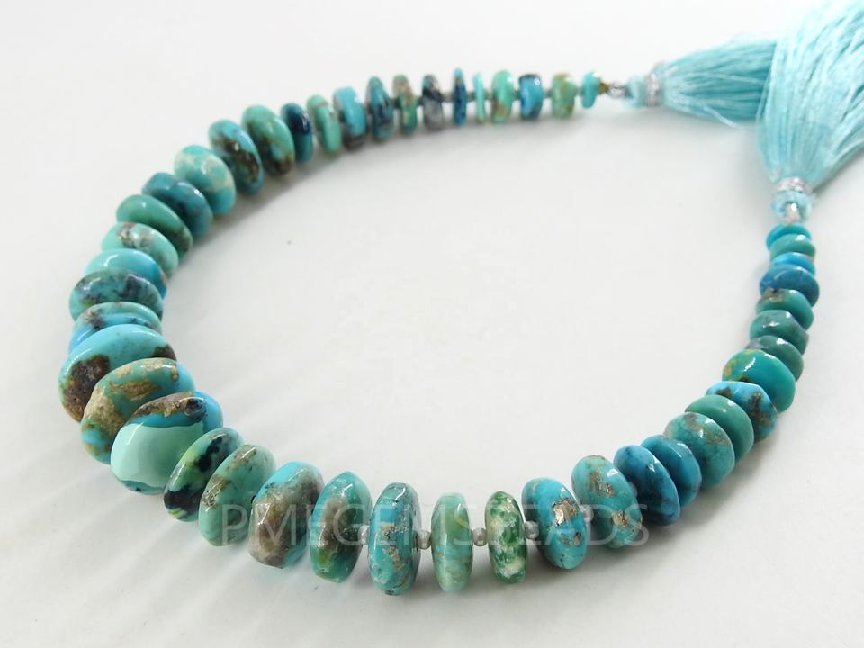 Arizona Turquoise Bleu Lisse Poli Coin Bouton Heishe Pneu Perle 8 Pouces Brin 7-16MM Environ Faire Des Bijoux Pierre Naturelle