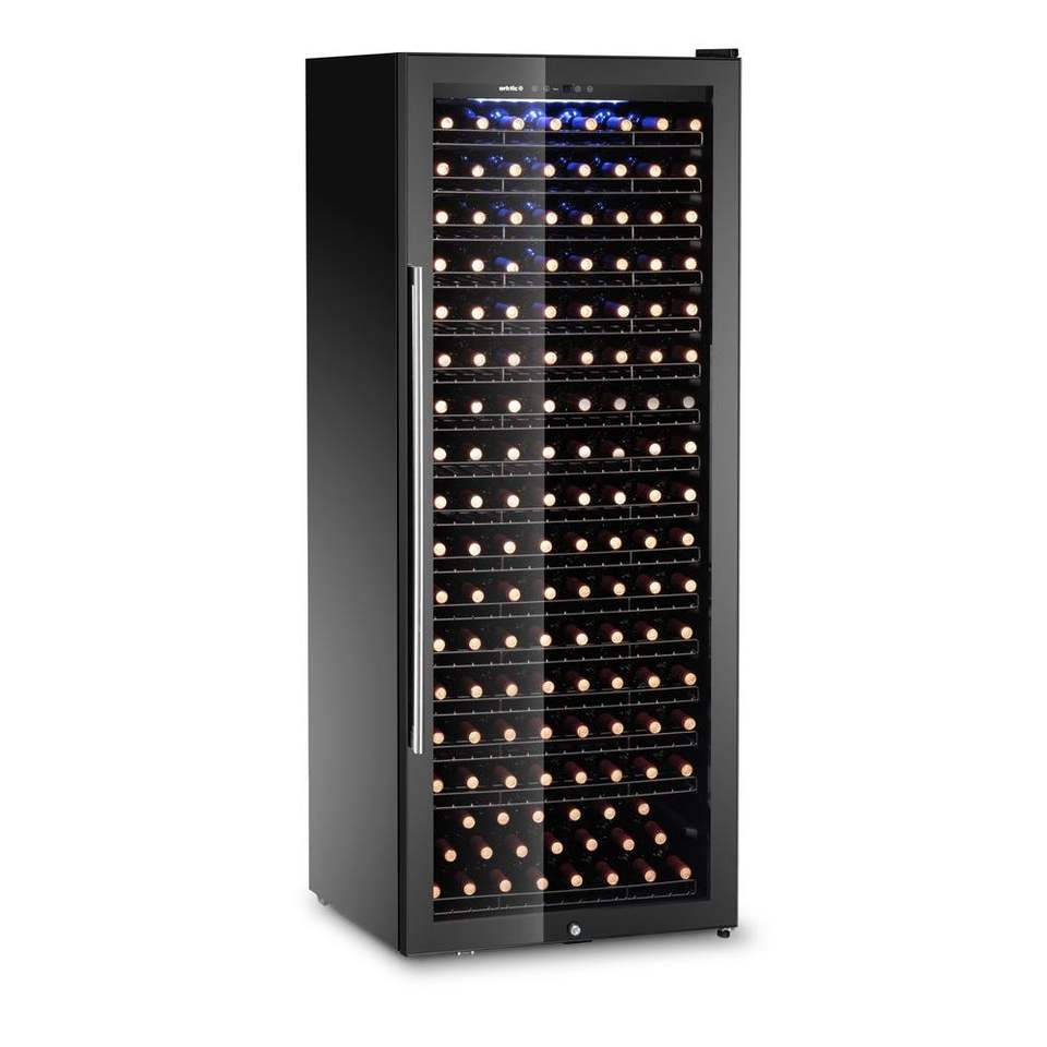 Réfrigérateur à vin commercial Arktic 542L pour cuisine, 1 zone, capacité de 224 bouteilles, noir, 685x700x1833mm