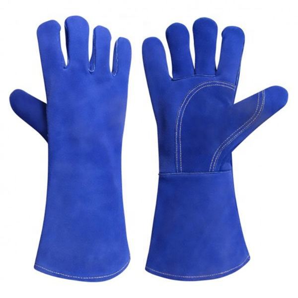 Gants de soudage rouges longue 14 pouces, industriels m m, résistant à la chaleur, Argon TIG, cuir de vache fendu, vente en gros