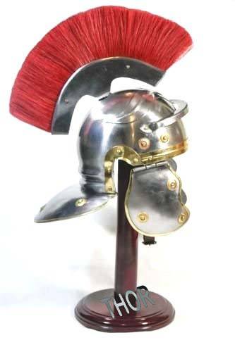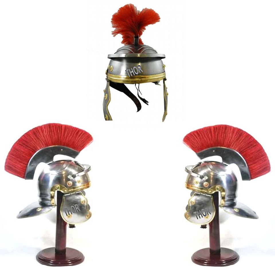Casque d'Armure Centurion Médiéval Chevalier Romain Officier Costume d'Armure Plume Rouge Armure Portable Finition Nickel