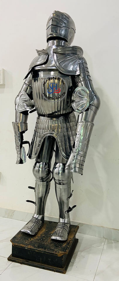Armure chevalier gothique Costume d'armure pleine taille finition chromée médiéval calibre 18 en acier portable Costume d'armure argent
