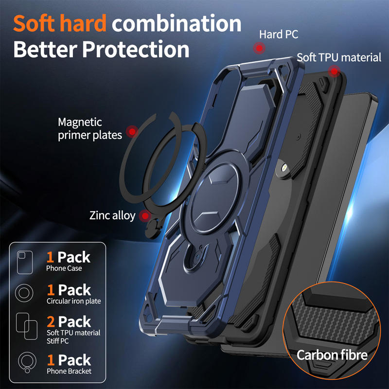 Coque Antichoc Renforcée pour Samsung Galaxy S25 EDGE S24 FE S23 Ultra S22 S21 Plus avec Béquille Anneau et Chargement Sans Fil pour Téléphone Portable
