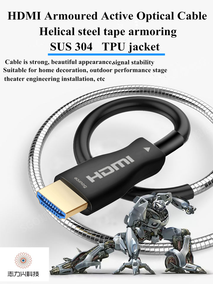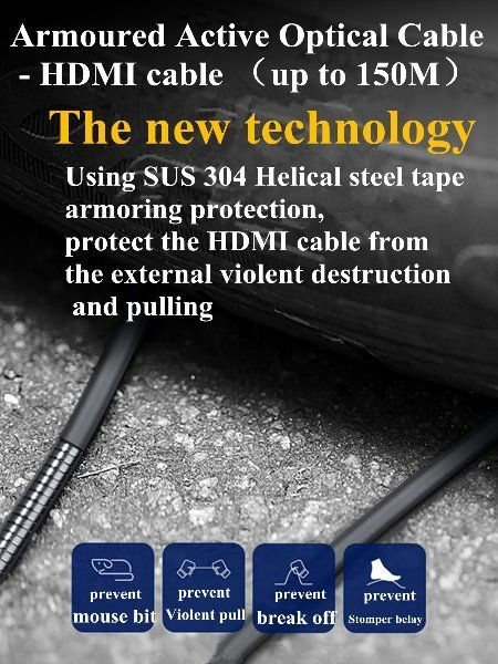 Armored HDMI Fiber Cable 4K 8K CBZLX Ultra Armor AOC Active 10M 15M 20M 100M Fiber Optical Armored Cable