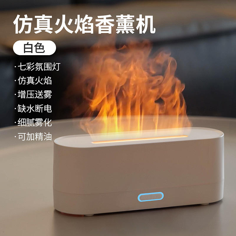 Diffuseur d'arômes, humidificateur USB avec lumière LED effet flamme, 160 ml, pour usage domestique, blanc