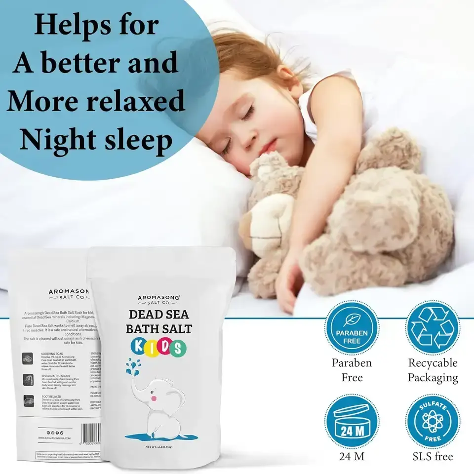 Aromasong Int. Sel minéral de la Mer Morte, naturel, non parfumé, pour bain corporel des adultes, marque privée, quantité minimale de commande 4 lb. Excellente qualité
