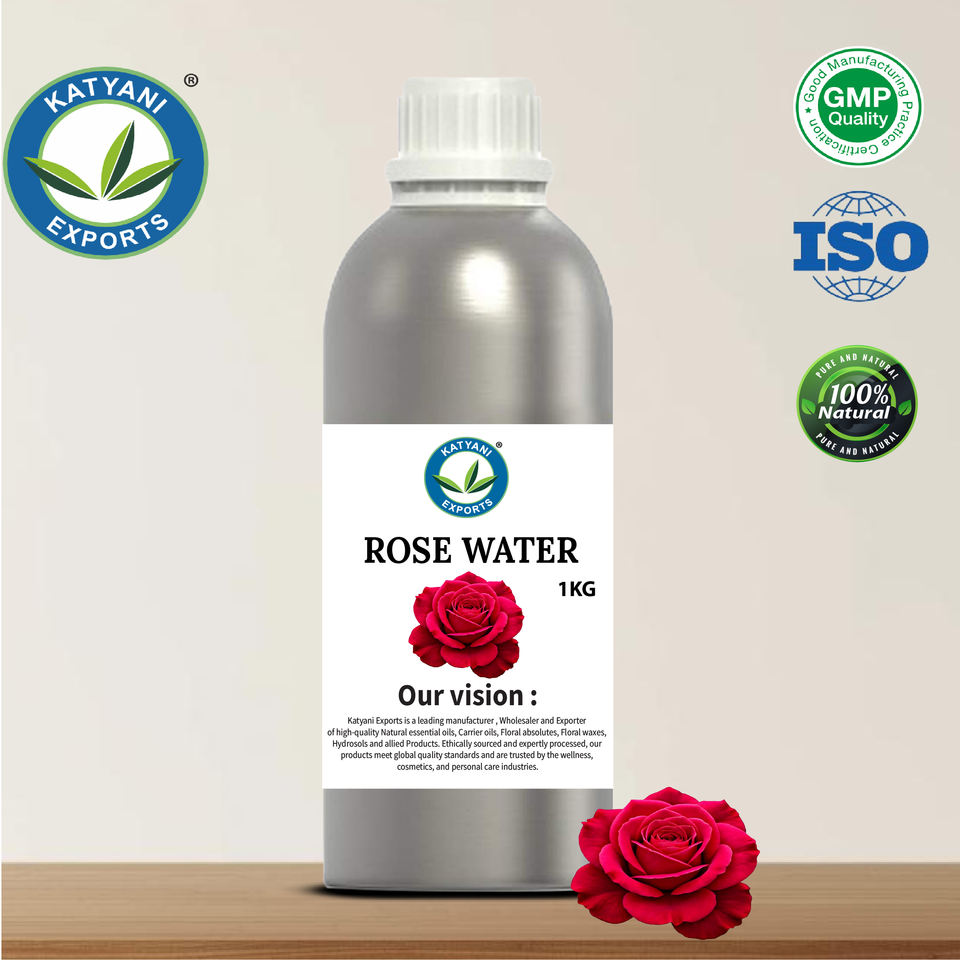 Eau florale hydrosolée de rose (Rosa Damascena) de qualité aromathérapeutique et thérapeutique, distillée à la vapeur - Par Katyani Exports India