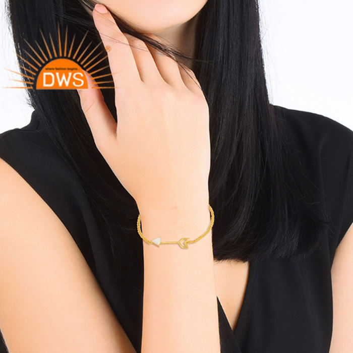 Bracelet tendance pour femme en argent 925 plaqué or avec pierre de lune arc-en-ciel, design flèche, fait main, cadeau de fête, fabricant de bijoux en Inde