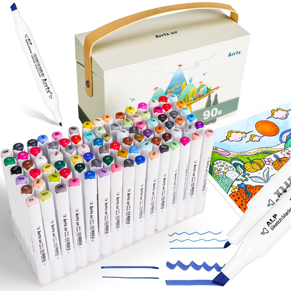 Arrtx ASM-0290B Prix d'usine 90 pièces/ensemble Marqueurs à double pointe de qualité stable pour fournitures artistiques Stylo à alcool pour croquis Dessin
