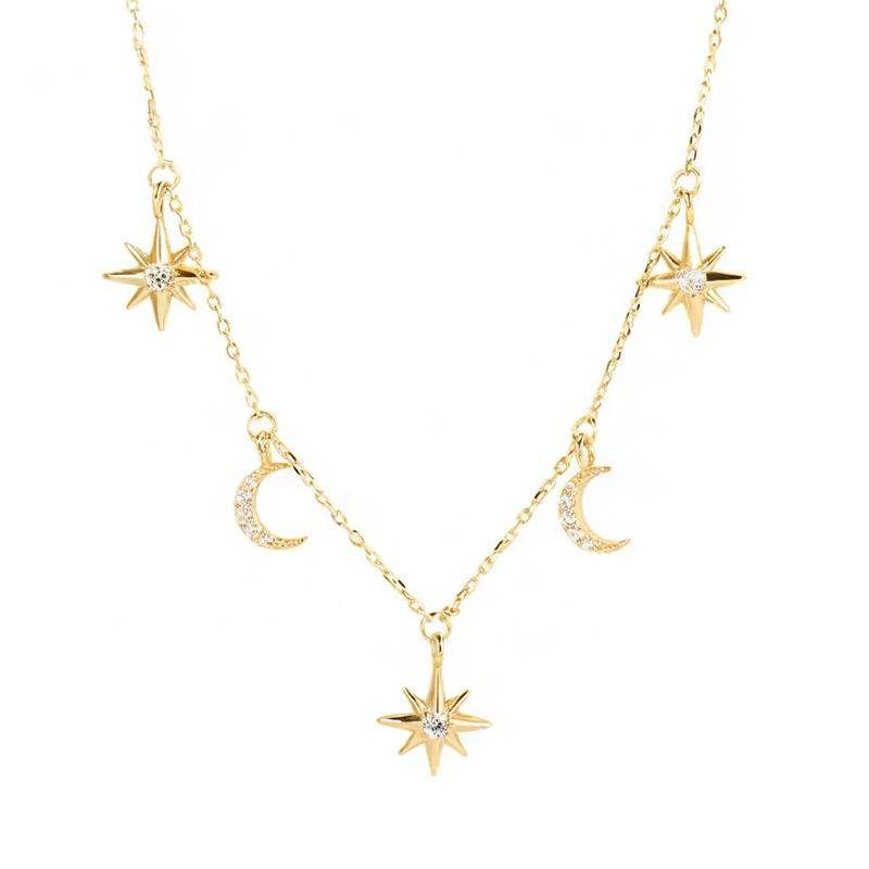 Product name:18K Solid Gold Dainty Stars & Crescent Moon Chain Charm Necklace