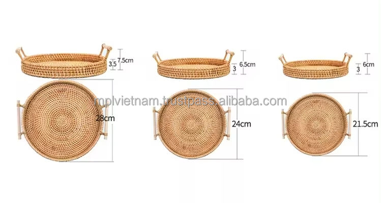 Art déco tissé à la main en rotin plateau de rangement avec poignée en boisNom du produit