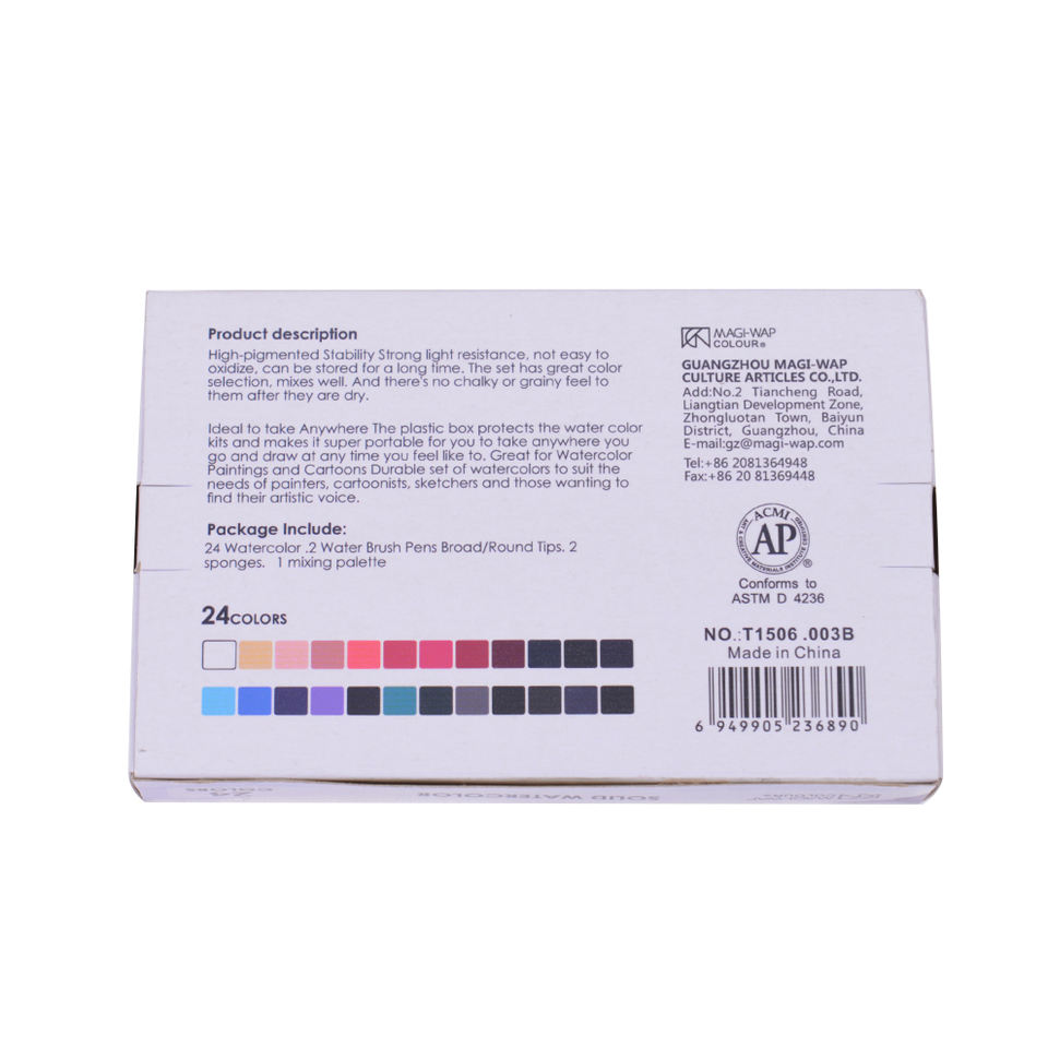 Nom du produit:Aquarelle solide avec boîte en plastique pour la peinture d'art étudiant