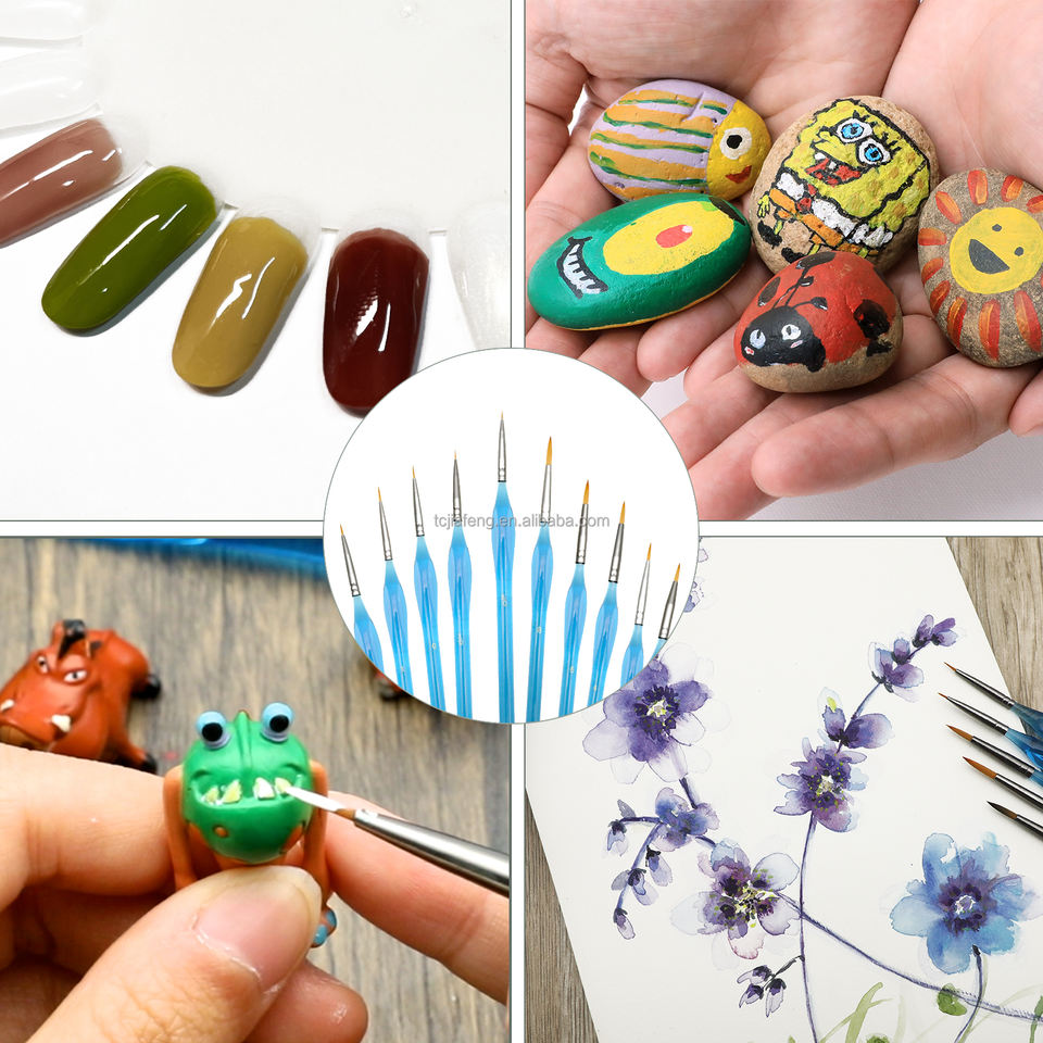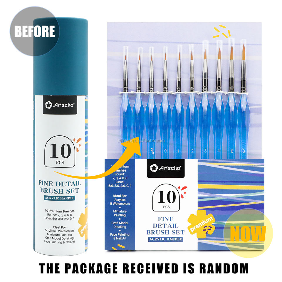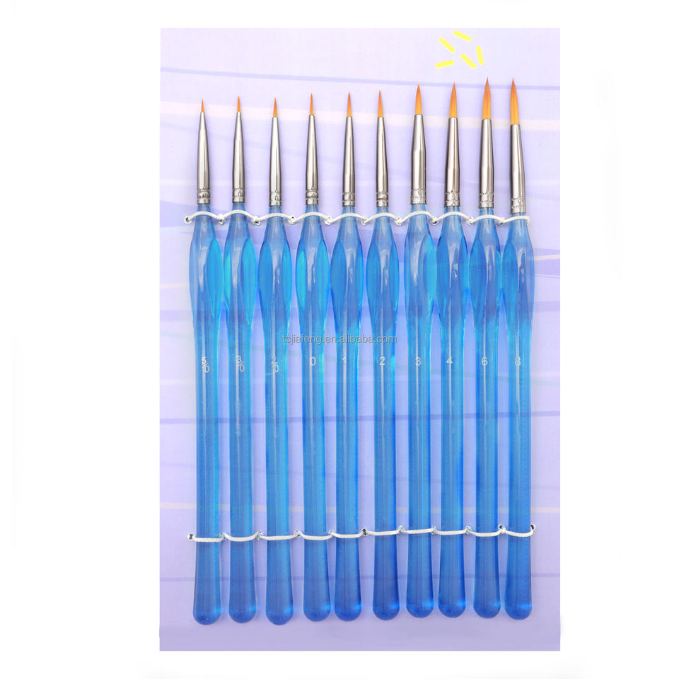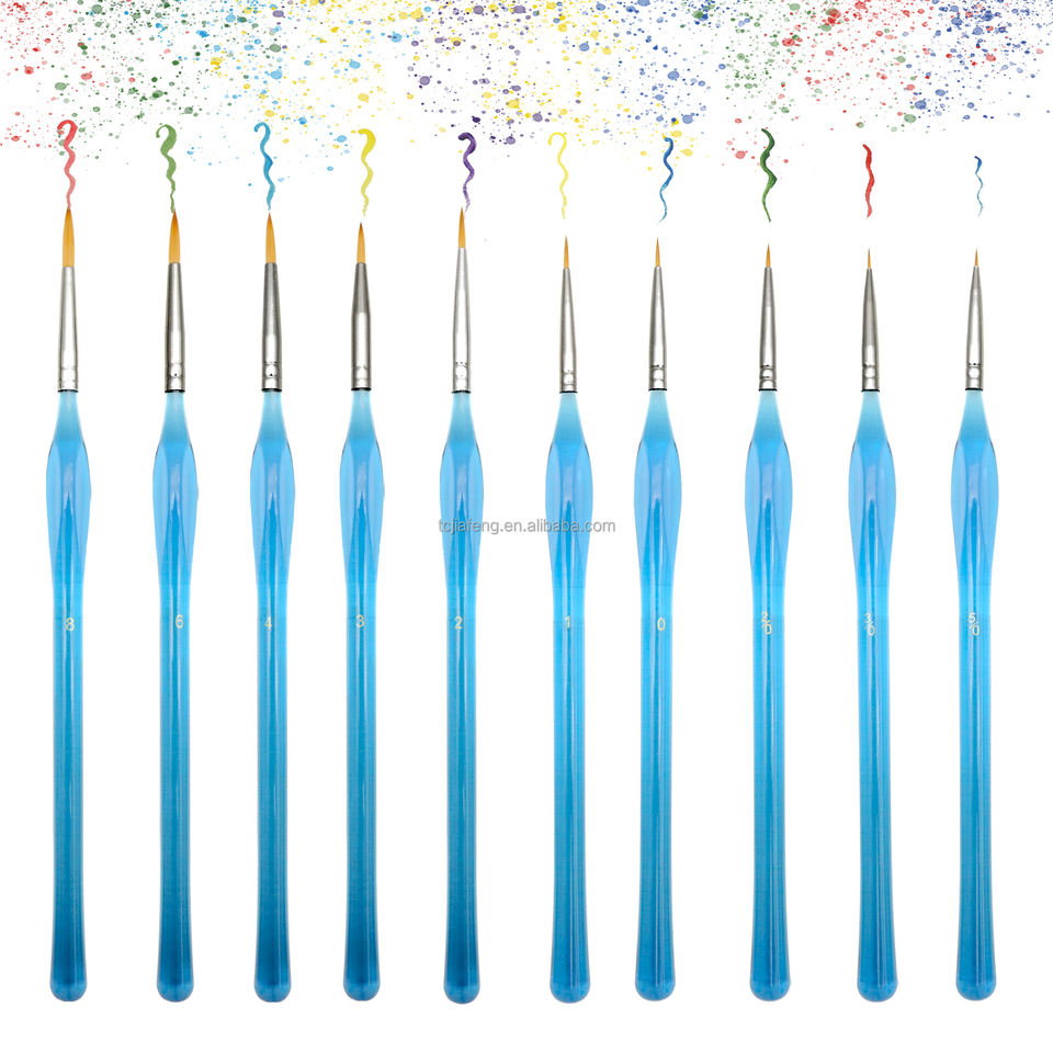 Ensemble de pinceaux ronds professionnels Artecho, 10 tailles, pour détails artistiques, manche bleu acrylique