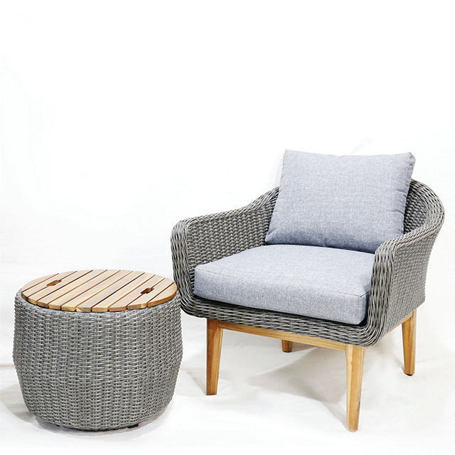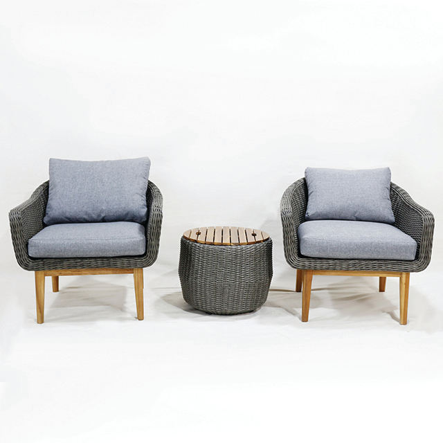 Artex Dong Thap Outdoor Coffee Set 3 Pieces Round Table with Acacia Wood Top and Wicker Chairs with Cushions