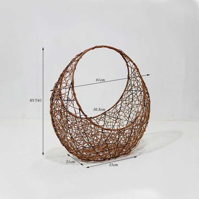 Panier multifonction Artex Dong Thap en rotin tressé, léger, minimaliste, demi-lune, à tissage ouvert, avec grande poignée