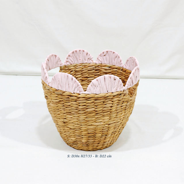 Artex Dong Thap Woven Water Hyacinth Flower Edge Decorative Storage Basket Set (3pcs)