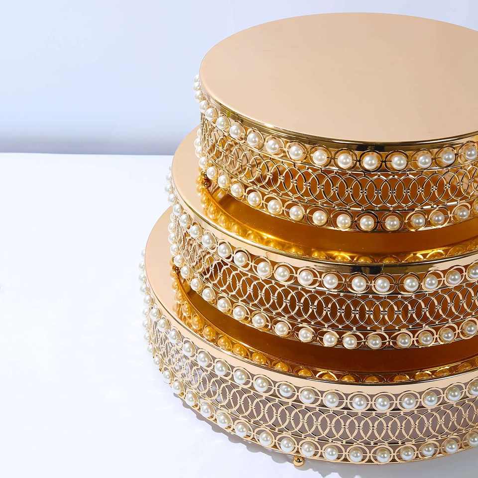 Ensemble de supports à gâteaux en métal artistique, conçu pour un environnement de service élégant avec une construction décorative lisse, améliore les gâteaux lors des réceptions