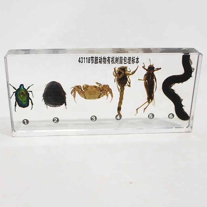 Spécimen d'arthropode encastré dans du PVC transparent, modèle anatomique d'insecte, science médicale