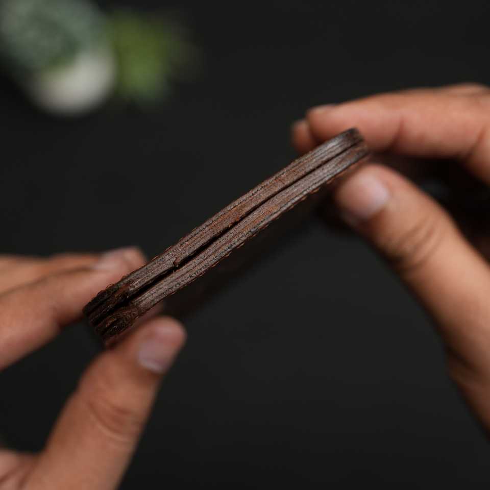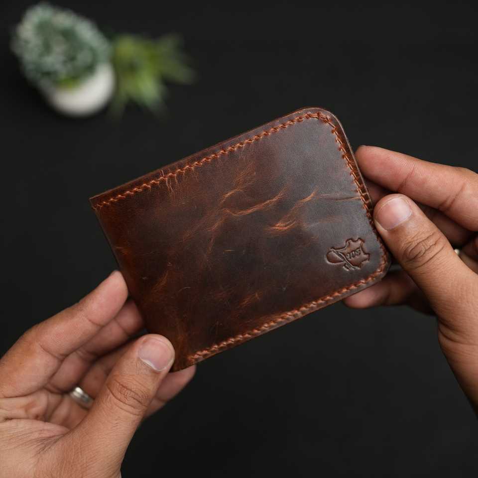 Portefeuille homme classique en cuir pleine fleur marron foncé gaufré, fait main, article 55