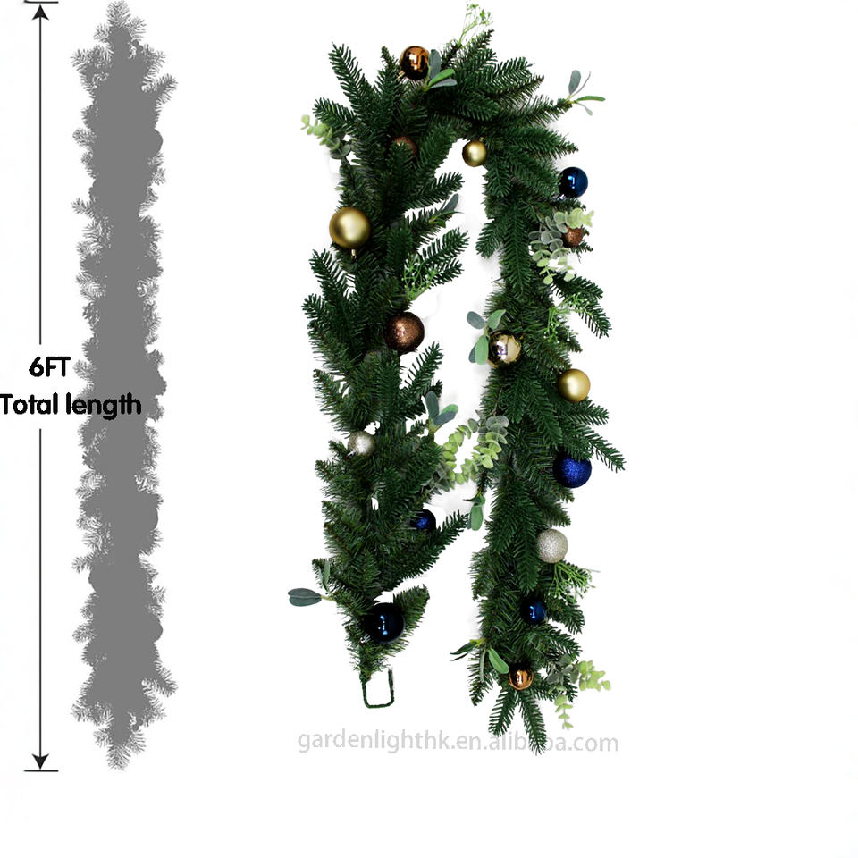Product name:6FT Green Christmas Garland with Decorated Bauble