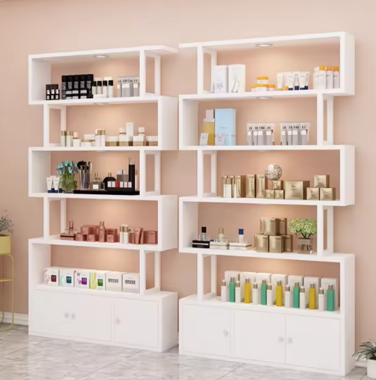 Meuble de rangement pliable moderne en panneau artificiel pour salon de coiffure, salon de beauté et hôtel - Étagère de présentation commerciale