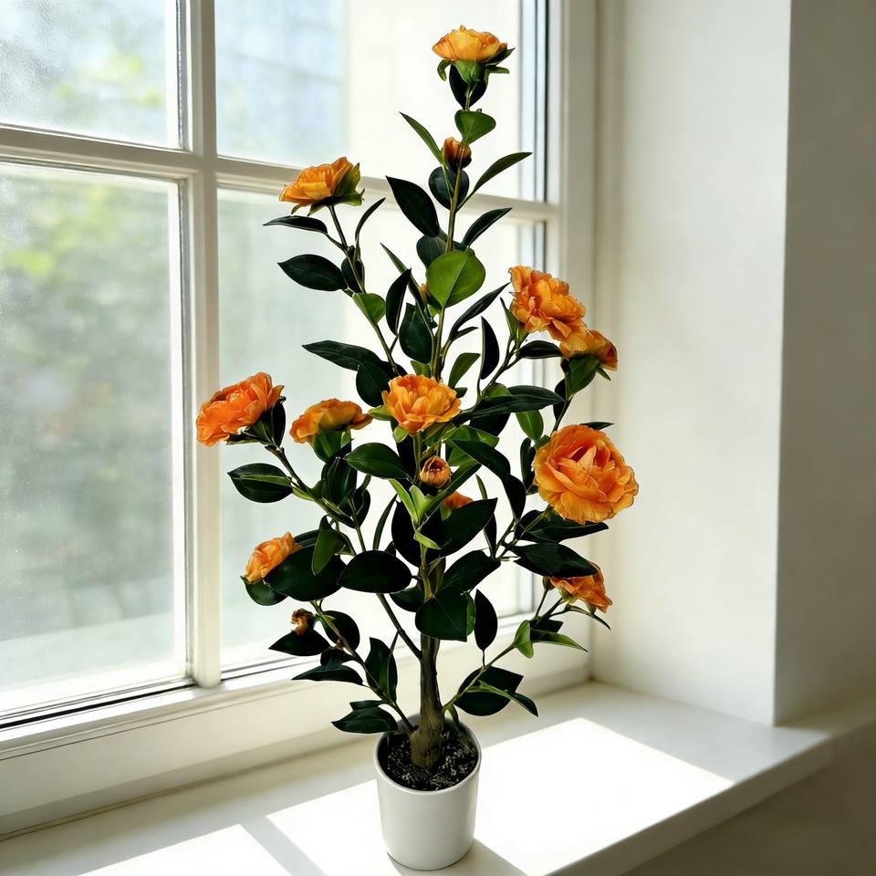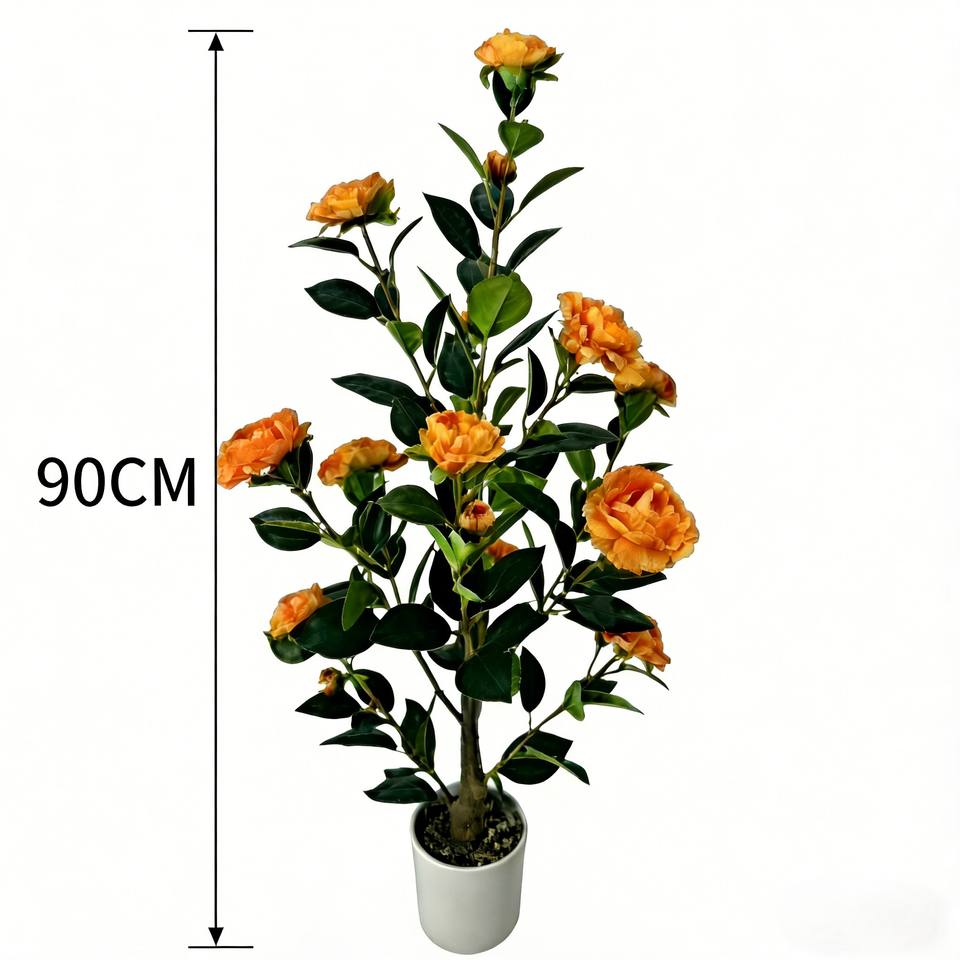 Arbre de camélia artificiel, faux arbre de camélia, arbre de camélia en pot