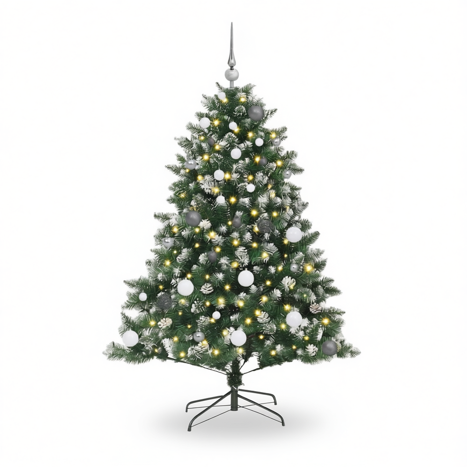 Sapin de Noël artificiel vert de 59,06 pouces avec 150 lumières LED blanc chaud, décoration festive pour la maison en période des fêtes